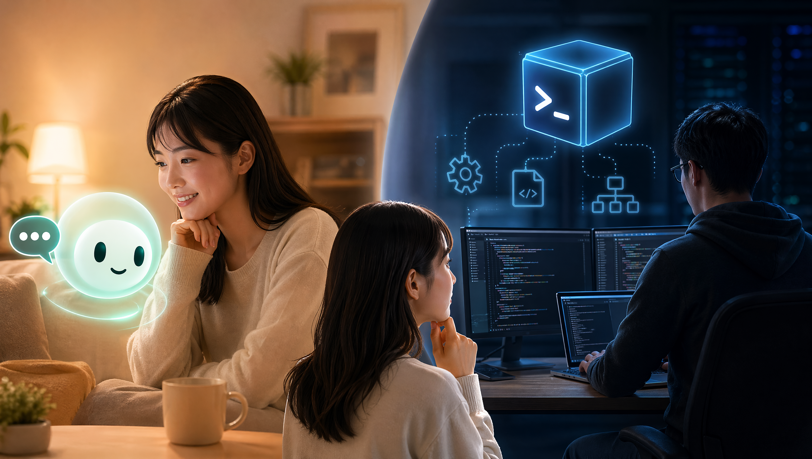 同日のニュースに Codex という名前も出てきますが、混乱しやすいので整理します。ChatGPT は、多くの人がスマホやブラウザで触る「話しかけるアプリ」です。Codex は、プログラムを書く人や、開発作業に近い仕事をする人向けの製品群(イメージとしては「エンジニアの作業机」)だと思ってください。