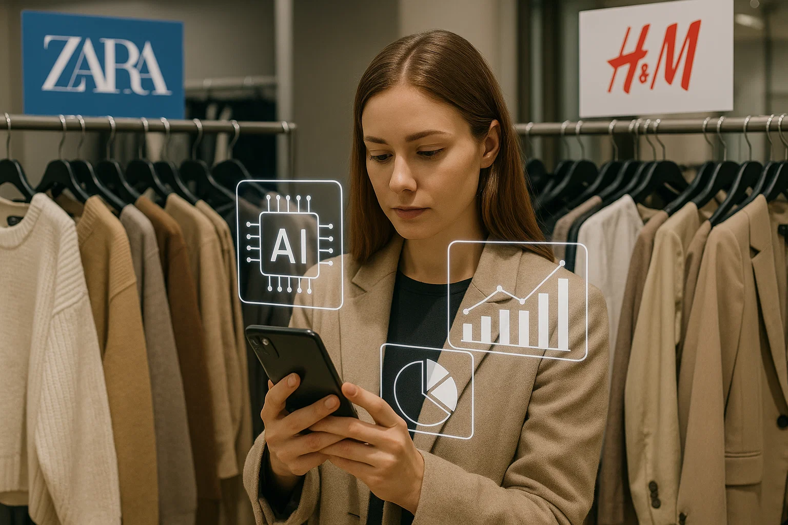 H&Mは200人以上のデータ分析専門家を雇用し、AIで需要を予測しています。2024年の実験では、AIが作ったコンテンツによってクリック率が24%向上し、生産コストは45%も削減できました。また、古着のリサイクル率を従来の一桁台から60%まで大幅に引き上げることにも成功しています。