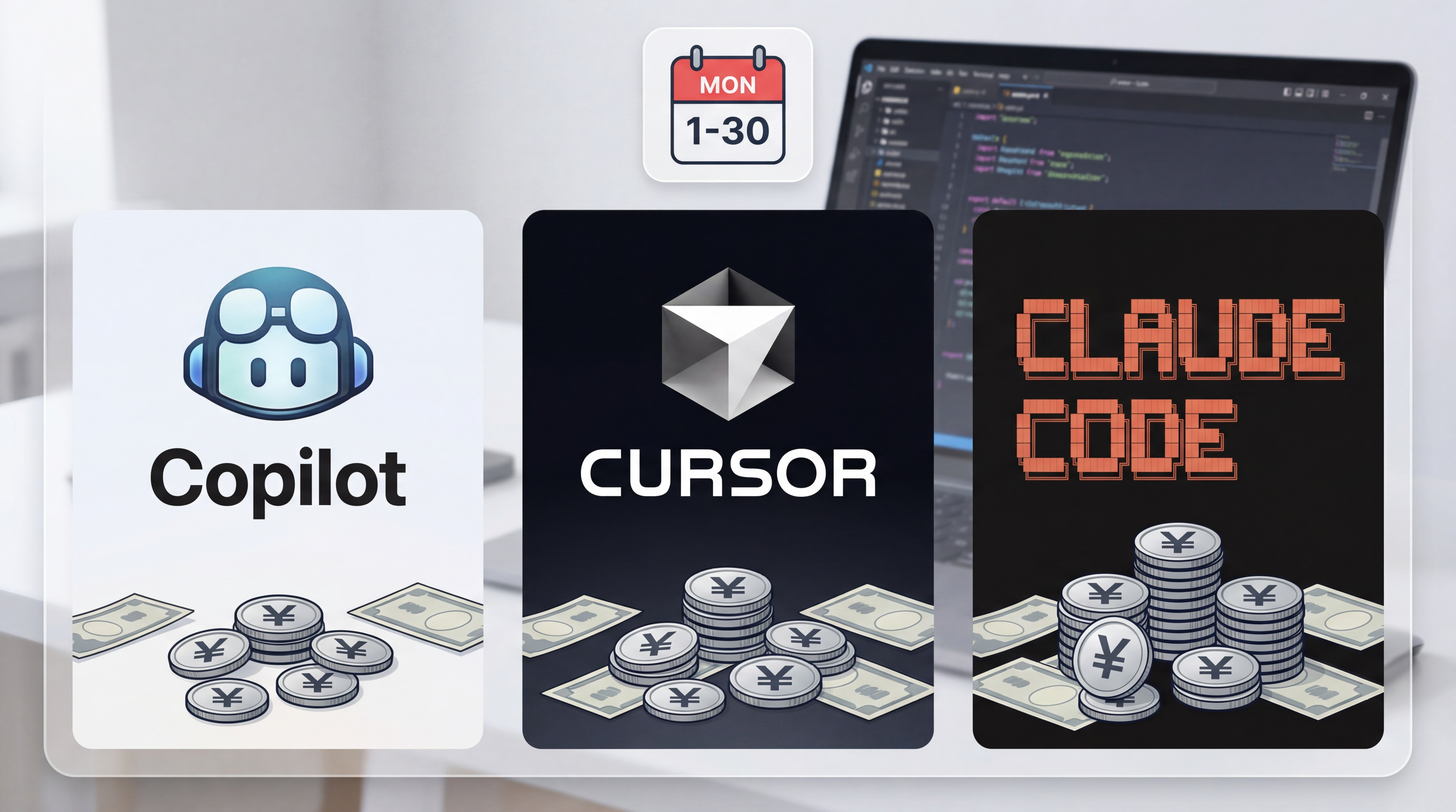 GitHub Copilot、Cursor、Claude Codeの徹底比較レビュー。実際に3ヶ月使用した筆者が、開発効率、コスト、使いやすさを数値データで分析。あなたに最適なAI開発ツールが必ず見つかる。
